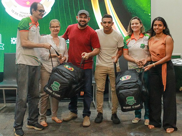 As seleções feminina e masculina de Várzea Alegre receberam dois kits completos de uniformes da Secretaria do Esporte do Estado do Ceará para a disputa da segunda fase do Campeonato Cearense de Seleções Municipais 2026. A entrega ocorreu, nesta quarta-feira, 15 de abril de 2026, na Arena Castelão e contempla as equipes do município, classificadas nas duas categorias para a próxima etapa da competição.