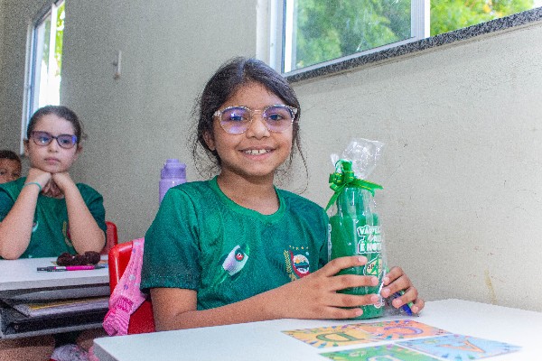 Os estudantes e professores das séries avaliadas - 2º, 5º e 9º anos do Ensino Fundamental - receberam kits compostos por blusas personalizadas, canetas, lápis e garrafas para água, como forma de incentivo e valorização do processo de aprendizagem.