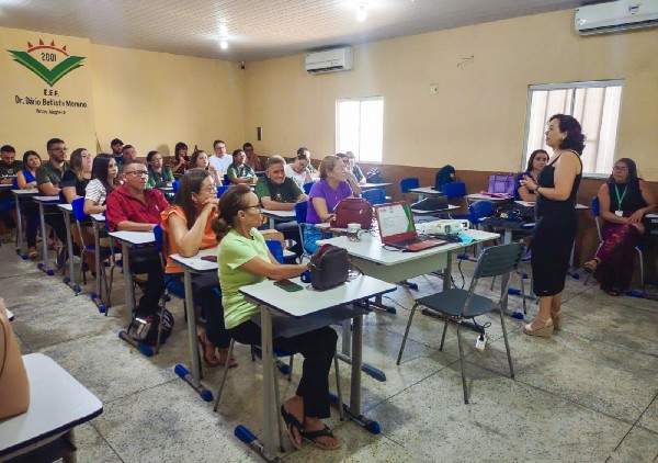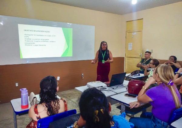 A formação foi conduzida pela secretária executiva do Meio Ambiente, Angela Bernardino, e pela técnica da pasta, Luiza Adeiuza, que apresentaram a temática "Semeando o Futuro: Educação Ambiental em Foco na Semana Pedagógica". O conteúdo abordou caminhos práticos para inserir a sustentabilidade no cotidiano escolar, indo além da teoria e estimulando atitudes aplicáveis à realidade das unidades de ensino.