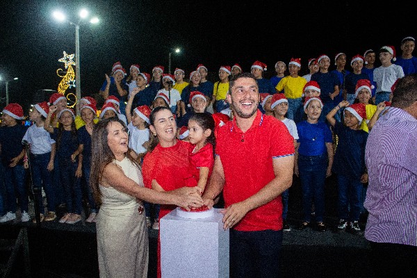 A cidade de Várzea Alegre deu início oficialmente às celebrações do XIX Natal da Paz na noite desta sexta-feira, 05 de dezembro de 2025, com o tradicional acionamento da iluminação natalina, realizado no Parque Cívico São Raimundo Nonato. O evento contou com a presença do prefeito Flavinho, da primeira-dama Íngrid Lemos, da secretária de Cultura e Turismo, Antônia Oliveira, dos vereadores Dedé da Topique e Valdilene Bitu, além de um expressivo público que prestigiou o momento.