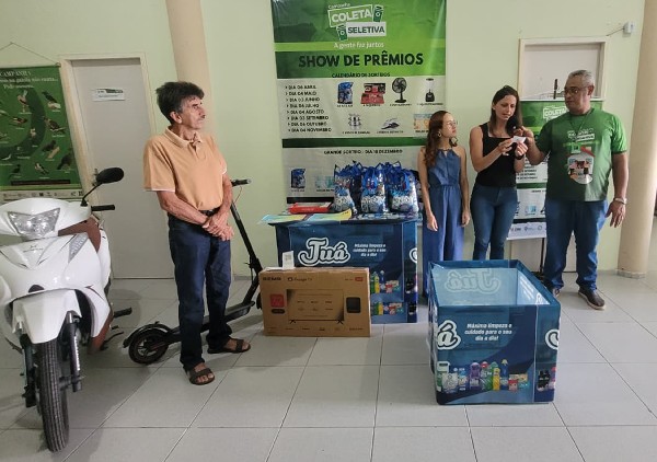 Foram sorteados sete kits de sabão Juá, um faqueiro e dois prêmios em dinheiro via Pix, nos valores de R$ 50,00 e R$ 100,00. A iniciativa integra as estratégias do município para incentivar a participação direta dos moradores na coleta seletiva e fortalecer a educação ambiental.