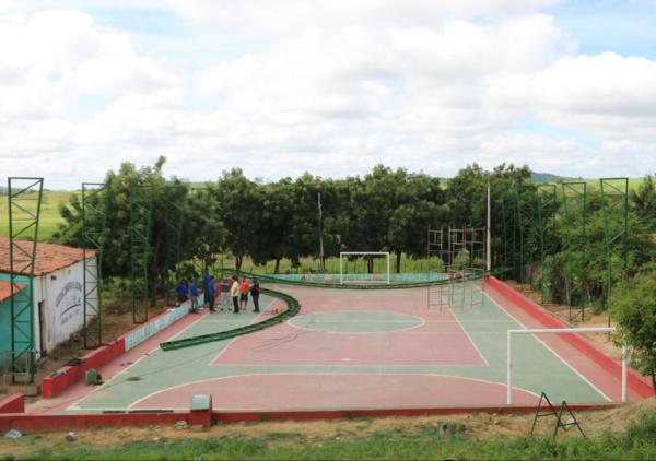 O Governo de Várzea Alegre realiza a cobertura metálica de uma quadra de esportes na comunidade de Juazeirinho, distrito de Canindezinho, onde também constrói um Sistema Coletivo de Abastecimento de Água.