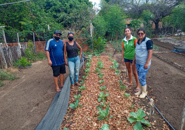 Esse projeto acontece através de uma mandala (Quintais Produtivos), plantada no nas terras da família e cuidada por ela e pelos pais dela Denisvaldo Guedes e Raimunda Pereira (Dona Raimunda).