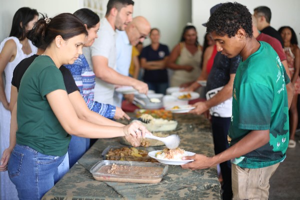 O momento reuniu os trabalhadores e suas famílias em um almoço coletivo, com sorteio de brindes e dinâmicas interativas, promovendo integração e reconhecimento ao trabalho desenvolvido pelos catadores no município.
