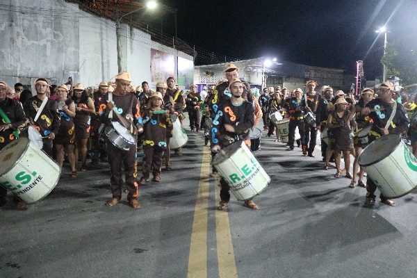 A bateria conduziu a evolução com ritmo contínuo, sustentando o desempenho das alas até o encerramento, que reuniu representantes de várias comunidades no segmento "Várzea Alegre de Canto a Canto".
