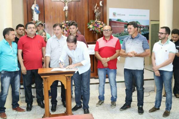 O prefeito de Várzea Alegre, Zé Helder (PMDB), o vice-prefeito Dr. Fabrício Rolim, o deputado federal Adail Carneiro (PP), os secretários municipais Ivo Leal (Saúde), Elonmarcos Correia (Infraestrutura), Antônio Gregório (Administração), e os vereadores Dedé da Topique (PT do B), Kleiton do Bar (PMDB) e Dra. Luciana Rolim (PV), assinaram, na Capela de São João Batista, no distrito de Riacho Verde, a ordem de serviço para a construção de uma Unidade Básica de Saúde - UBS.