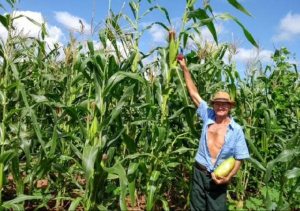 Nesta área, estão consociadas as culturas de milho, feijão, fava, melancia, jerimum, melão pepino, maxixe, amendoim, além de 01 hectare de algodão, cultura que está sendo revitalizada com o apoio do Governo Municipal.